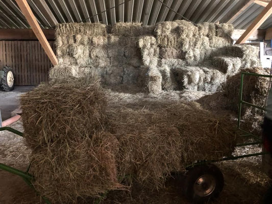 Eine weitere wichtige Säule ist gutes Raufutter. Unsere Tiere bekommen Heu ad libitum (so viel sie mögen). Unser Heu holen wir vom Bauern und sind sehr zufrieden damit. Wichtig ist uns neben der Struktur auch, dass es möglichst staubarm ist.