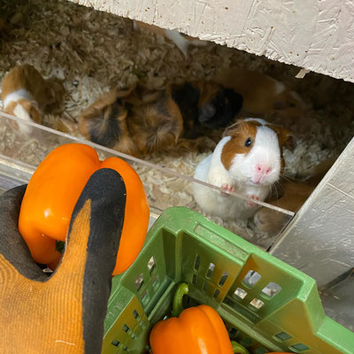 Die Schweinchen erfreuen sich in unserem 2017 neu bezogenen Stall neben gutem Futter an ausreichend Rennstrecken und unterschiedlichsten Versteckmöglichkeiten. Alles ist hell, freundlich und gut belüftet.