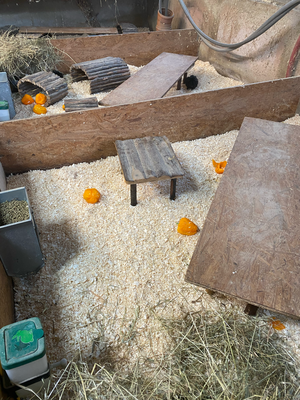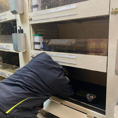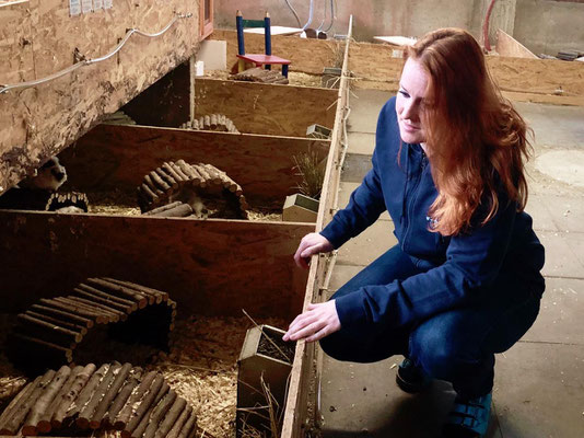 2022/2023 wurden die Verpaarungsboxen modernisiert. Wir haben uns einen ausgeklügelten Eigenbau überlegt, der Komfort für die Tiere bietet und uns das Ausmisten doch sehr erleichtert. Die Tiere fühlen sich ausgesprochen wohl und auch unsere Rücken sind durchaus dankbar für das Upgrade ;)